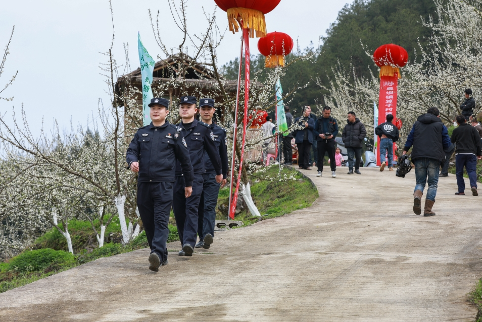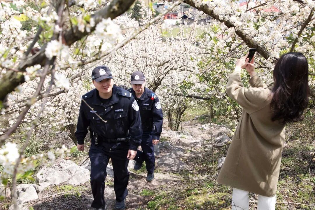 这里路不好走,拍照游玩时要注意看路......民警在花间巡逻时对拍照打卡的游客说道。三月,春风佛面,春意盎然。位于孙家坝镇的李花争相开放,簇簇怒放的李花点缀着周围山川,勾勒出一幅亮丽迷人的春日画卷,吸引着周边很多游客前来观赏打卡,定格春的气息。结合特定时间的地方特色,民警有针对性地开展“护游警务”模式,在巡逻时,提醒大家要注意保管好自己的随身物品,要注意防骗,增强安全防范意识。同时,在巡逻过程中,发现并处理各类问题,对游客的问路、求助热情耐心地解答,积极提供帮助用实际行动践行着全心全意为人民服务的宗旨,用“辛苦指数”换取游客的“平安指数”。