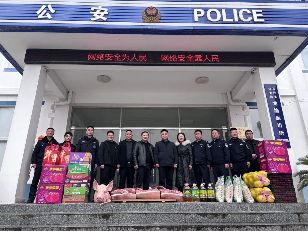 图为石阡县龙塘镇党委、政府领导到龙塘派出所望慰问民警辅警