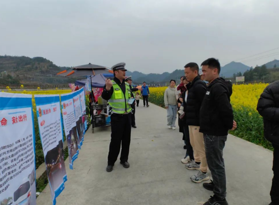 民警们采取“旅游+宣传”模式,向前来赏花的游客面对面讲解“一盔一带”“拒绝酒驾醉驾”的重要性,让游客在出门踏青赏花的愉悦氛围下掌握更多的交通安全知识。