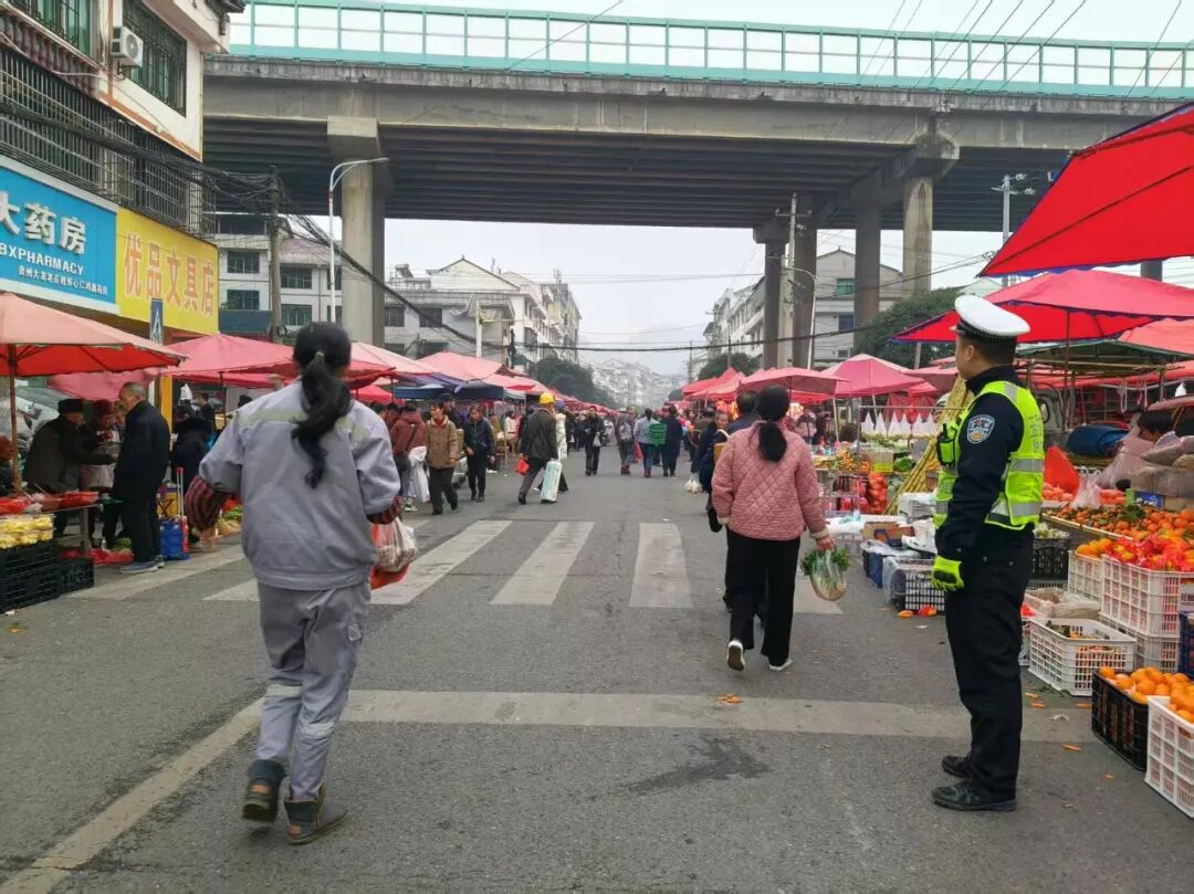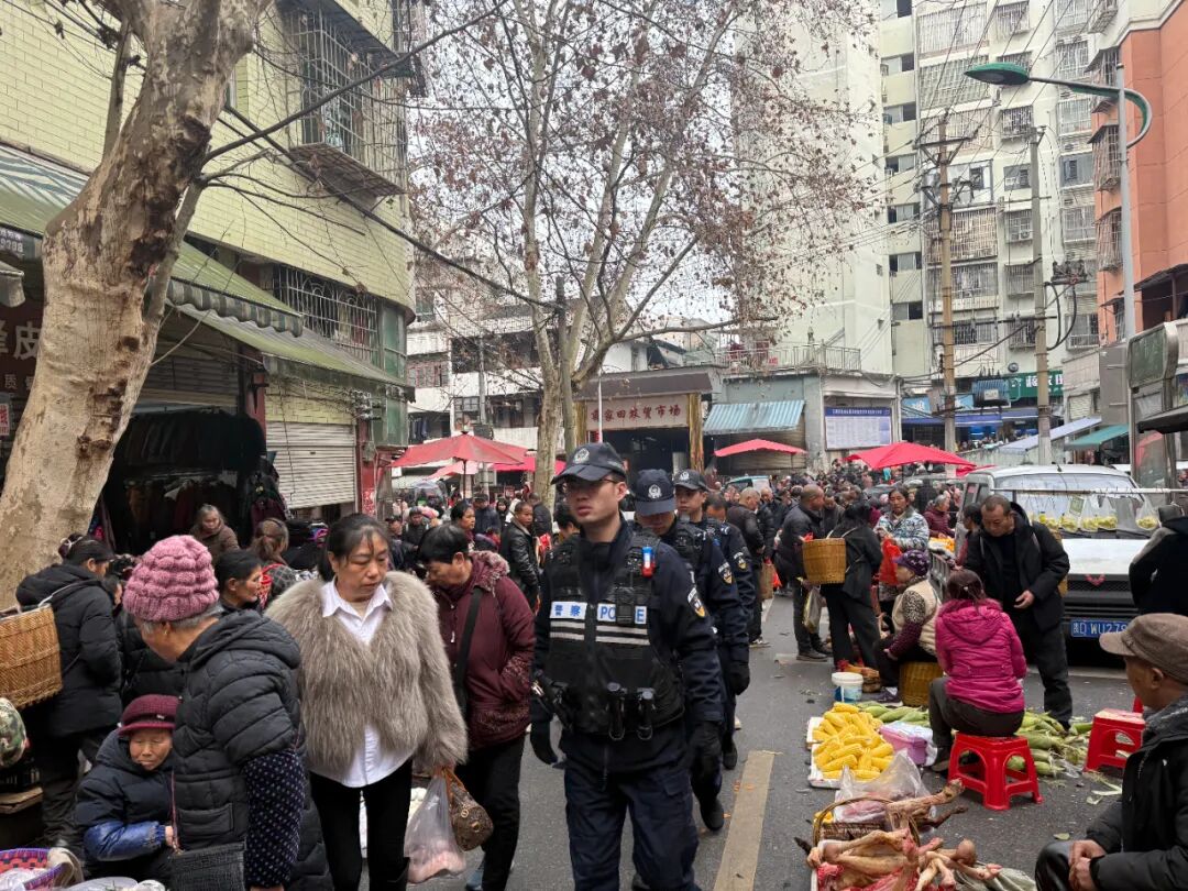 年关将近,玉屏公安用自己独特的方式,在忙碌与烟火味交织的集市,守护着群众的平安出行。