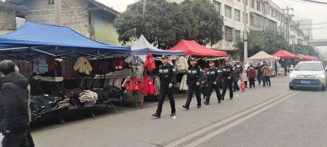 在人头攒动的集市主干道,巡逻民警迈着整齐的步伐穿梭其中,并用目光紧盯集市的每个角落。他们不仅及时疏导拥堵、调解小纠纷,还对扒窃等违法行为形成有力震慑,为热闹的市集撑起了一把坚实的大伞,编织着一张无形的安全网。