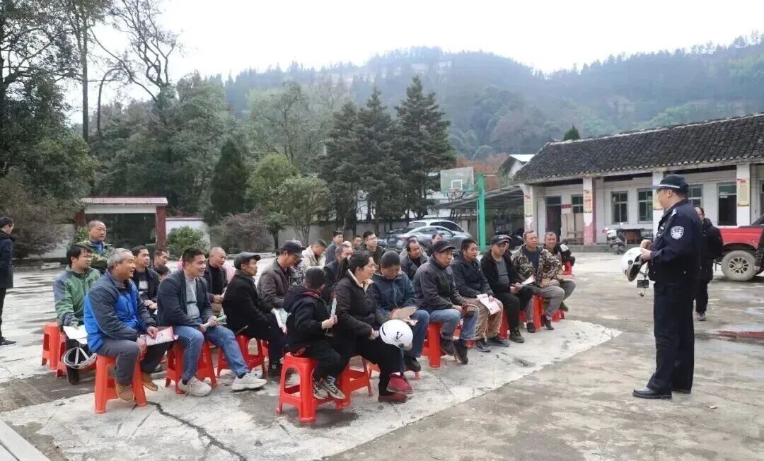 2月6日,江口县公安局交管民警为江口县怒溪镇梵星村乡亲们上交通安全课