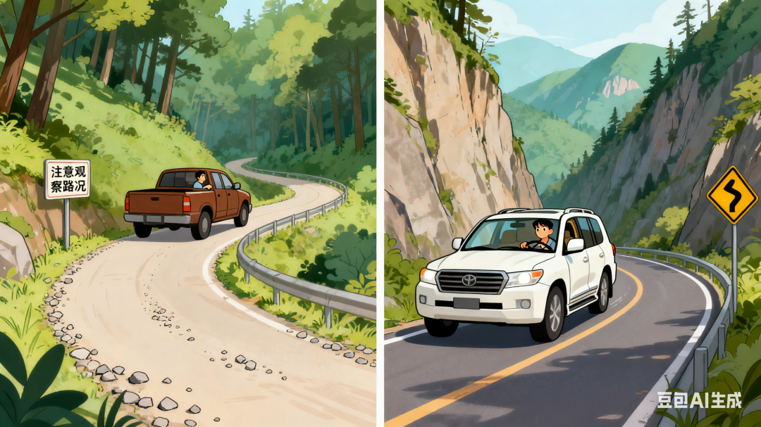 在县乡村道路和山区公路驾车行驶时,要注意观察路况,严格遵守限速规定,弯坡路段不要违法超车、违法占用对向车道逆行,经过村庄、路口、山路转弯处要提前鸣号、减速通行。