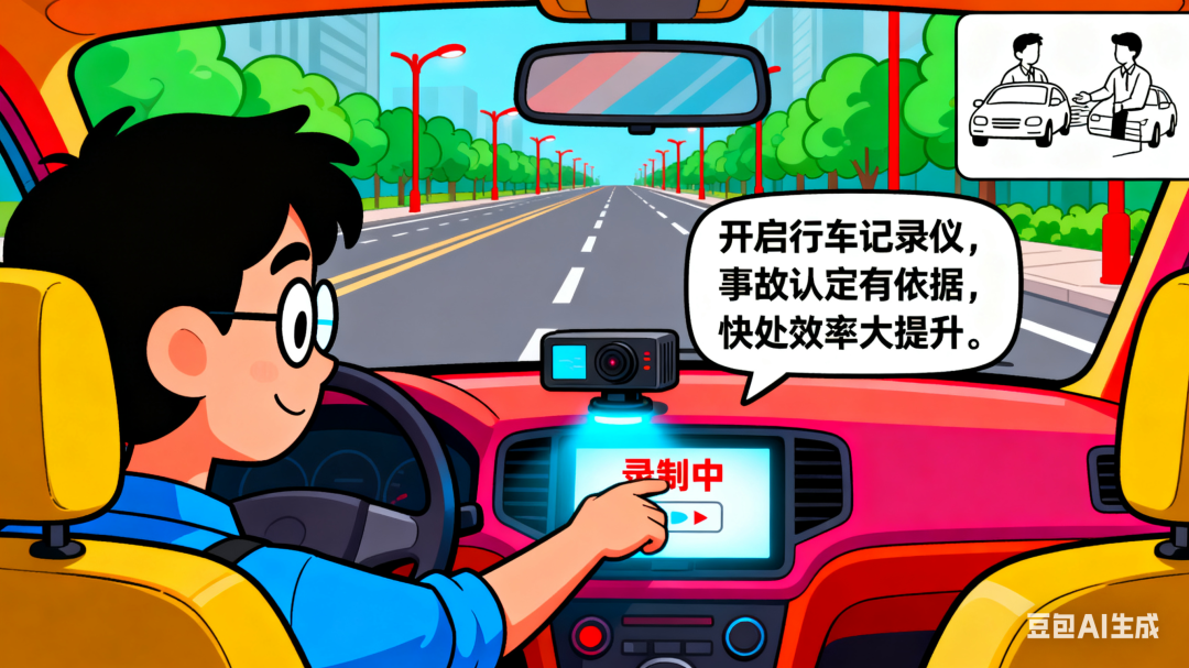 推荐驾车时开启行车记录仪,以方便事故认定,提高事故快处效率。